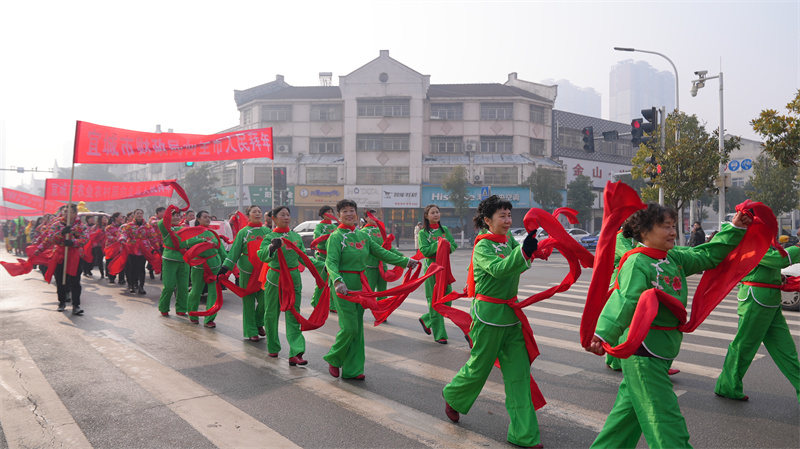 巡演隊(duì)伍沿自忠路——紫陽觀路——宜城大道——燕京花苑一路巡演,生動展現(xiàn)了楚都宜城傳統(tǒng)和時(shí)尚交相輝映,各項(xiàng)事業(yè)發(fā)展欣欣向榮的美好盛景。