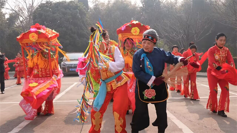 今年是甲辰龍年,舞龍和舞獅是本次巡演的必備元素,象征著吉祥和力量,寄托著人民對新一年的美好祝愿;腰鼓的節(jié)奏明快激昂,秧歌的舞姿輕盈歡快,展現(xiàn)出楚都兒女的激情與活力;打連廂、旱船、蚌殼等傳統(tǒng)節(jié)目生動地再現(xiàn)了古代勞動人民的生產(chǎn)生活場景;趕犟驢、彩帶龍、麒麟送子、老背少等非遺節(jié)目則因其濃郁的地方特色和對生活的美好寓意,更受廣大觀眾喜愛。