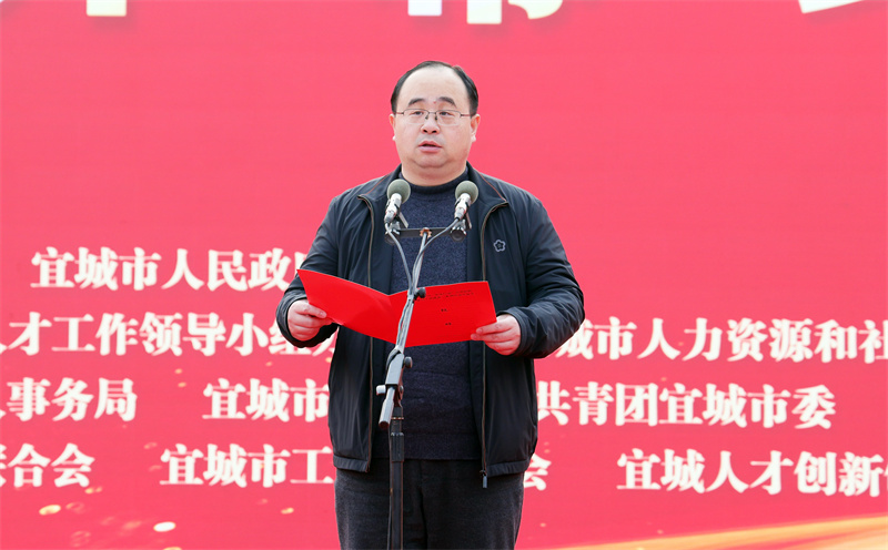 武義泉致辭并宣布2024年宜城市“春風(fēng)行動(dòng)”招聘活動(dòng)開(kāi)幕。