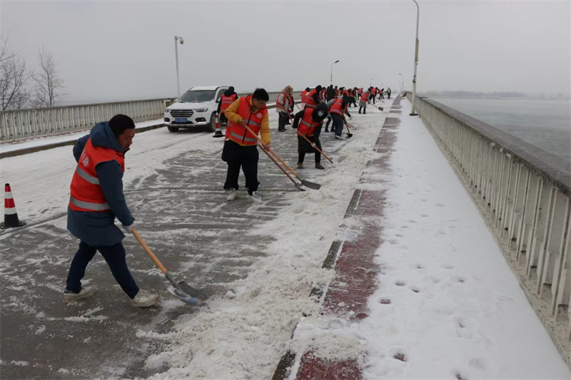 2月20日降雪以后,宜城市公路管理局立即啟動(dòng)雨雪天氣應(yīng)急響應(yīng),與交警、交通、應(yīng)急管理局、市政、環(huán)衛(wèi)等部門建立聯(lián)動(dòng)機(jī)制,針對(duì)巡查反饋的漢江大橋、倚天大橋、孔灣大橋、鶯河大橋、界山等多條國省干線路面、橋面積雪、結(jié)冰和濕滑現(xiàn)象,迅速組織除雪保暢應(yīng)急隊(duì)伍、機(jī)械設(shè)備投入除雪融冰工作,突出陡坡、彎道、橋梁等重點(diǎn)區(qū)域,清掃積雪,拋灑融雪劑,全力消除安全隱患。此外,針對(duì)漢江特大橋梁積雪結(jié)冰、機(jī)械施工困難等情況,宜城市公路管理局、湖北經(jīng)天路橋有限公司成立的150人志愿除雪應(yīng)急隊(duì)伍,人工開展除雪保暢工作。通過一系列的積極應(yīng)對(duì)措施,路面結(jié)冰現(xiàn)象得到了有效緩解,有力保障了公路的安全暢通。