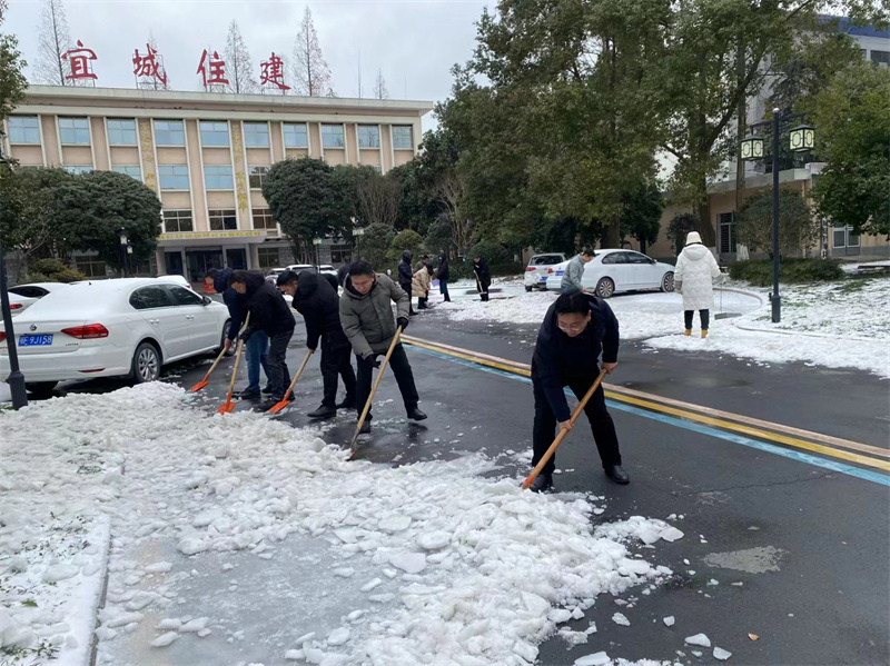 本網(wǎng)訊記者張玥琪 陳飛 鄭潘 閔海嘯報道:2月20日夜晚至2月21日凌晨,宜城遭遇大范圍寒潮凍雨降雪天氣,道路積雪結(jié)冰情況嚴重,給市民出行和交通秩序帶來了較大影響。為確保全市道路交通安全暢通,各相關(guān)部門迅速響應(yīng)市委、市政府號召,積極開展鏟雪除冰保暢通工作。
