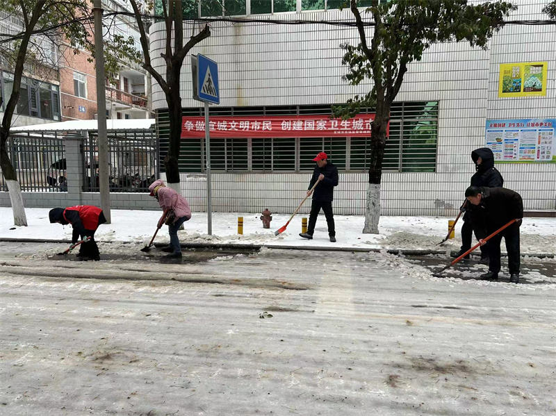各部門各單位全力以赴,第一時間開展鏟雪除冰作業(yè),按照“門前三保”責任范圍,主動清掃積雪,確保道路安全通暢。他們不畏嚴寒,齊心協(xié)力,共同守護著市民的安全出行通道。