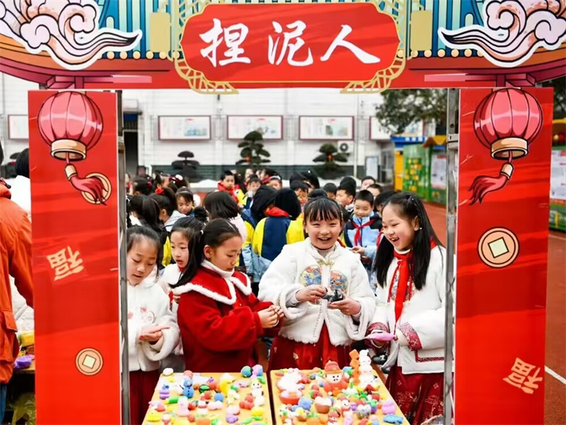 本網(wǎng)訊通訊員杜遵剛報(bào)道:2月26日,宜城市南街小學(xué)為全校師生奉上了一場融合春節(jié)廟會(huì)、滿載幸福年味的高品質(zhì)傳統(tǒng)文化盛宴。該校近3000名學(xué)生分年級(jí)到操場各個(gè)攤位親身體驗(yàn)豐富又好玩的傳統(tǒng)文化項(xiàng)目。
