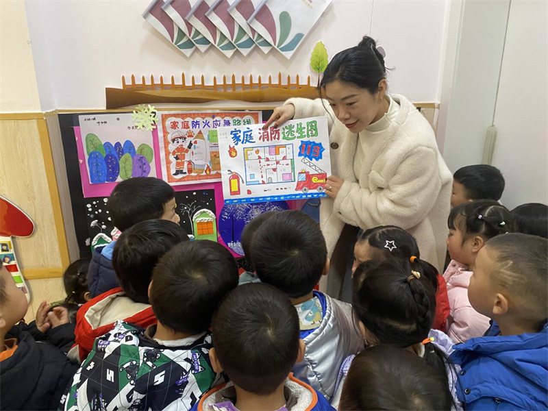 各班進行形式多樣的消防安全教育活動,老師們利用消防手抄報、課件、視頻、實物展示、動作講解等形式,向幼兒詳細講解火災中逃生、自救的正確方法。