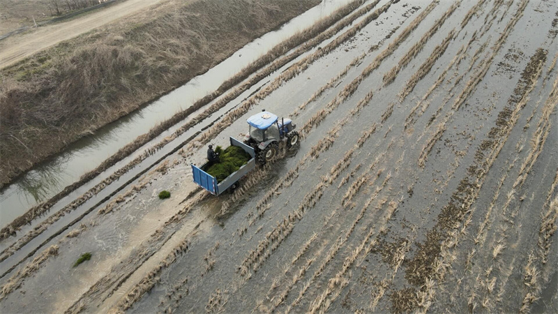 3月2日,在位于鄭集鎮(zhèn)潘河村的一處稻蝦生態(tài)種養(yǎng)基地,數(shù)名工人正在將剛運(yùn)來的伊樂藻進(jìn)行轉(zhuǎn)移、種植,為今年小龍蝦養(yǎng)殖提前做好“糧草”準(zhǔn)備。