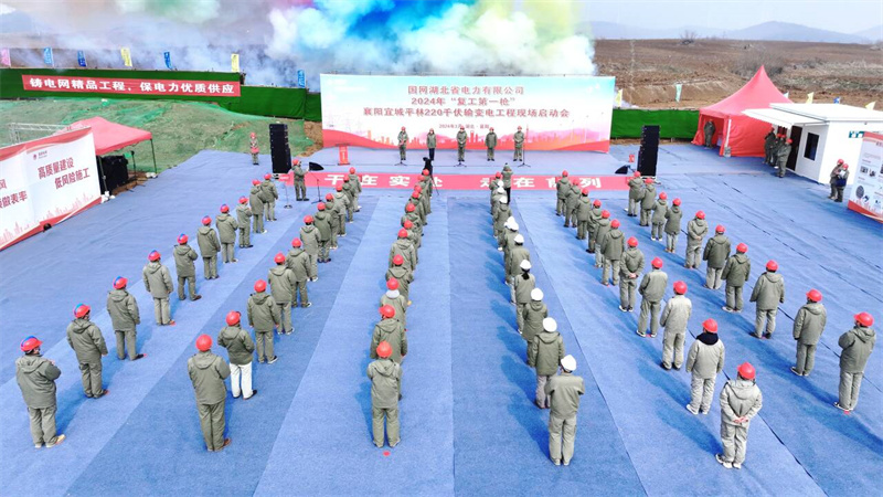 報(bào)道:3月6日,國(guó)網(wǎng)湖北省電力有限公司2024年“復(fù)工第一槍”暨宜城平林220千伏輸變電工程復(fù)工啟動(dòng)儀式在宜城市板橋店鎮(zhèn)羅屋村舉行。
