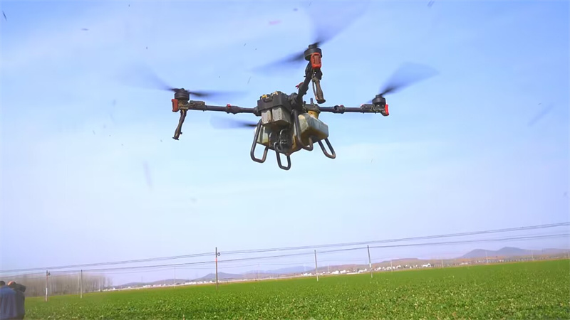 當(dāng)天上午,在宜城市南營街道安垴村一處油菜示范基地,一架植保無人機從地面飛到油菜基地上空,按照設(shè)置好的路線來回盤旋,對油菜進行“飛防”作業(yè)。
