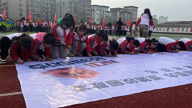 宣誓結(jié)束后,學(xué)生們紛紛在橫幅上簽下名字,表達(dá)對反欺凌行動(dòng)的堅(jiān)定支持和積極參與,鄭重承諾從自身做起,與人為善,文明禮貌,遵規(guī)守紀(jì),不做校園欺凌者。