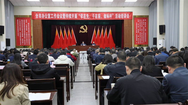 報(bào)道:3月29日,全市辦公室工作會(huì)議暨持續(xù)開展“學(xué)在先、干在前、做標(biāo)桿”活動(dòng)培訓(xùn)會(huì)在財(cái)培中心召開。會(huì)議深入學(xué)習(xí)貫徹習(xí)近平總書記關(guān)于新時(shí)代辦公廳工作的重要指示精神及全國和全省、襄陽市黨委和政府秘書長(辦公室主任)會(huì)議精神,總結(jié)2023年工作,安排2024年工作,推動(dòng)全市辦公室“三服務(wù)”工作不斷邁上新臺(tái)階、取得新突破。