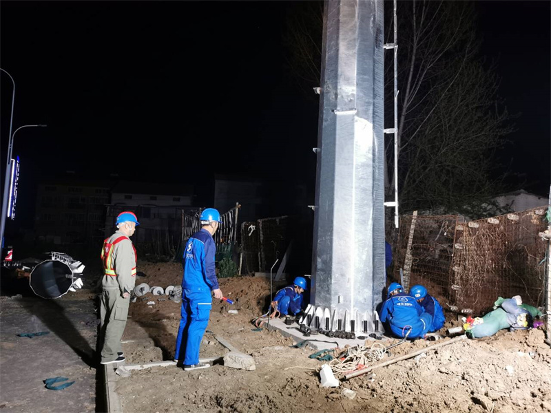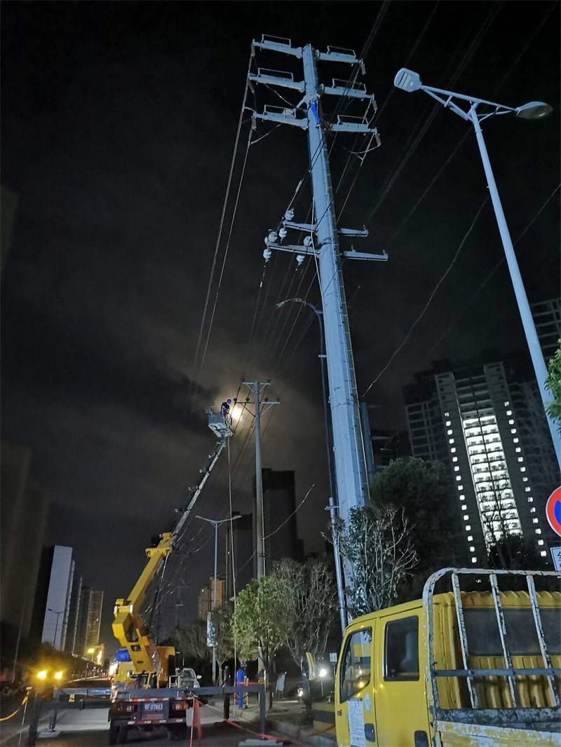 當(dāng)天中午1點30分,施工人員完成了包括立桿、新舊線路倒接等線路遷改工作,從開工到完成奮戰(zhàn)13個小時,順利為項目開發(fā)建設(shè)“讓道”。