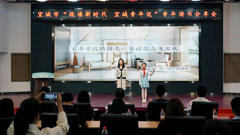 分享會(huì)在節(jié)目表演《壯志少年行》中拉開(kāi)序幕。來(lái)自各行各業(yè)的優(yōu)秀青年代表依次走上講臺(tái),分享了《理想國(guó)》《回望次第花開(kāi)時(shí)》《和善堅(jiān)定正面管教》等熱門(mén)書(shū)籍,朗誦了《讀書(shū)》《五星出東方》《讀書(shū)是一種修行》等內(nèi)容,情景劇表演《家書(shū)重提躊躇志苦讀能忘萬(wàn)古憂(yōu)》等將現(xiàn)場(chǎng)氛圍推向高潮。青年代表們或引經(jīng)據(jù)典,或慷慨激昂,或深情講述,充分展示了宜城青年勤于思考、熱愛(ài)學(xué)習(xí)的良好風(fēng)貌。精彩的演繹贏得了現(xiàn)場(chǎng)聽(tīng)眾的陣陣熱烈掌聲。