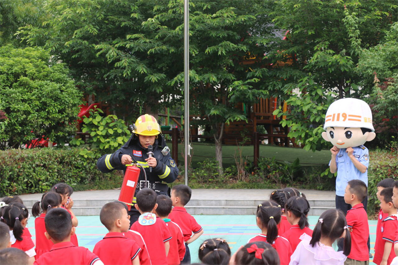 演練結(jié)束后,消防員針對孩子們年紀小、好奇心強、活潑好動的特點,通過互動問答形式對火災的危害、生活中如何預防火災、如何逃生自救、如何正確撥打119火災電話、如何使用滅火器等消防安全知識進行了講解。同時為幼兒園教職工做了一個簡短的消防培訓,教授他們滅火器的用法及操作順序。