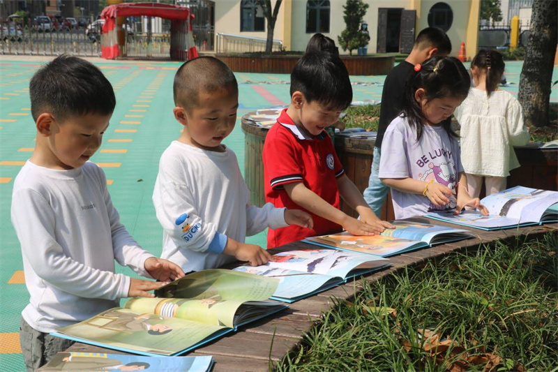 在曬書過程中,宜城市實驗幼兒園的萌娃們積極參與到搬運圖書的隊伍中,他們認真仔細地翻開書本進行晾曬,發(fā)現(xiàn)書本有破損處,趕緊想辦法修補。翻曬繪本時,遇到好玩有趣的畫面,會忍不住地和身邊的小伙伴們分享,在書海中遨游。
