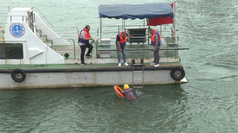 當(dāng)天9點(diǎn)05分,隨著應(yīng)急演練啟動(dòng)指令發(fā)出,各參演單位迅速進(jìn)入緊急狀態(tài),緊張有序開(kāi)展防洪防汛險(xiǎn)情處置和落水人員救助工作。演練中各應(yīng)急小組分工明確、配合默契,落水人員快速得到救助,370#橋墩局部邊坡加固完成,險(xiǎn)情有效控制。