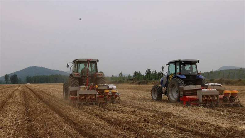 5月19日,在雷河鎮(zhèn)廖河村一處種植基地,兩臺播種機在田間穿梭,開展大豆玉米帶狀復合種植作業(yè),伴隨著播種機的轟鳴聲,大豆玉米種子按照科學設(shè)定好的行距和株距均勻地播入田里,實現(xiàn)了翻田、播種、施肥一體化操作。