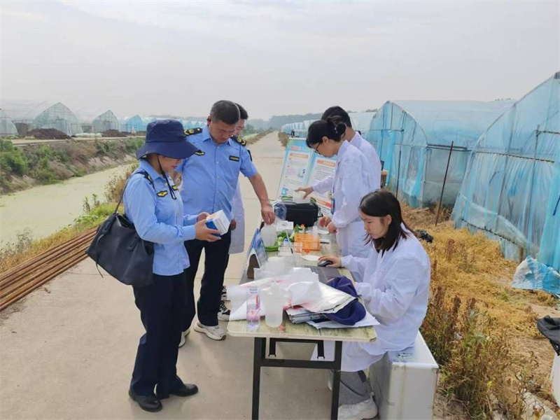 本網(wǎng)訊通訊員張金輝報(bào)道:近日,宜城市農(nóng)業(yè)農(nóng)村局、市農(nóng)業(yè)綜合執(zhí)法大隊(duì)、市公共檢驗(yàn)檢測(cè)中心三方聯(lián)合在南營(yíng)辦事處金山村湖北小波現(xiàn)代農(nóng)業(yè)有限公司,開展送檢到農(nóng)戶活動(dòng),數(shù)名黨員莊嚴(yán)宣誓,為保護(hù)農(nóng)百姓舌尖上的安全守牢底線,全面提升全市農(nóng)產(chǎn)品質(zhì)量安全水平。