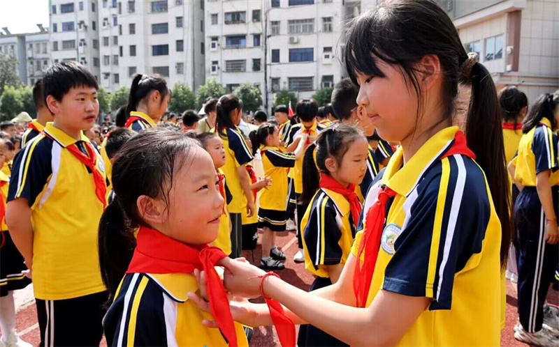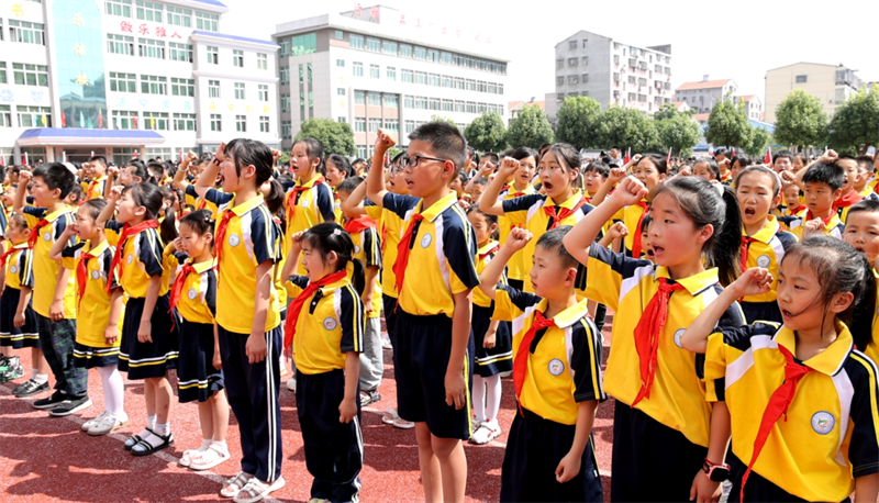 “今天我很高興,我也很驕傲。我要好好學(xué)習(xí),給小朋友們做榜樣,做一名新時(shí)代好少年!毙玛(duì)員何雨默說。