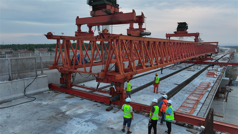 18點40分預(yù)制梁在架橋機的精密操作下緩緩平移至預(yù)定位置,并安全降落,確保了橋梁主體結(jié)構(gòu)的順利閉合。