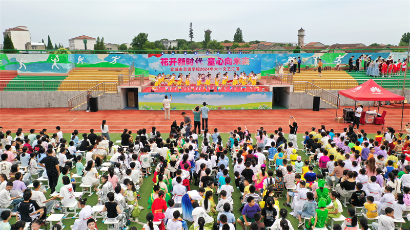 5月30日,鄢城街道白廟小學舉行了“童心飛揚,夢想起航”慶六一文藝演出。(吉波 何蘋攝)