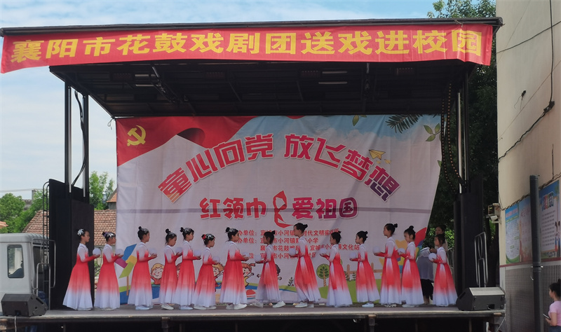 5月30日,小河鎮(zhèn)新華村小學聯(lián)合襄陽市花鼓戲劇團舉行了一場別具一格的文藝匯演,共慶六一。(包乃波 楊雪芳攝)