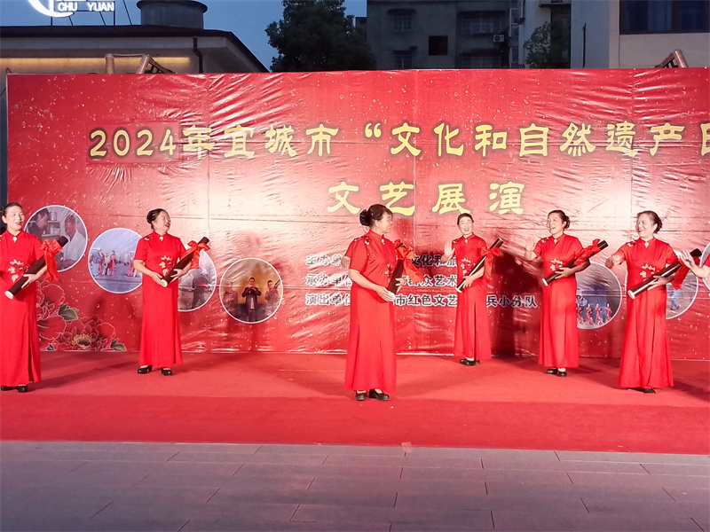本網訊通訊員楊亦逍 李敏瑞報道:6月3日晚,由宜城市文旅局主辦,市群藝館承辦、市紅色文藝輕騎兵小分隊參演的宜城市“文化和自然遺產日”文藝展演活動在楚宜青創(chuàng)園舉行。