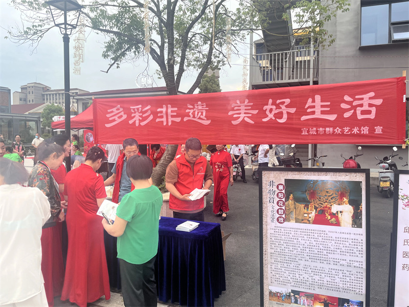活動現(xiàn)場,市群藝館志愿者還向過往市民、觀眾和游客免費發(fā)放襄陽市非物質文化遺產宣傳手冊,《宜城蘭花筒》等非遺叢書,讓市民進一步了解本土非遺知識。