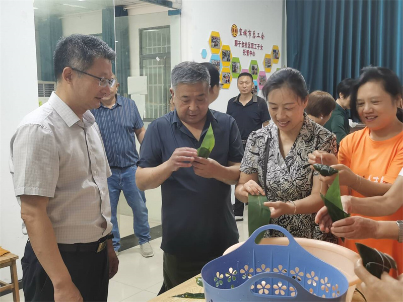 在郾子臺社區(qū)居民服務(wù)中心,正逢社區(qū)開展“民族團(tuán)結(jié)一家親 萬粽一心總是情”的各族群眾包粽子活動,周斌一行深入其中,與各族群眾一起動手包粽子,并向群眾送上真誠的節(jié)日祝福。