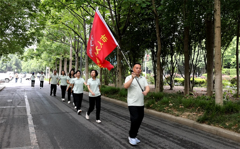 教師代表趙家兵說(shuō):“我將深入學(xué)習(xí)領(lǐng)會(huì)習(xí)近平總書(shū)記關(guān)于體育工作的重要論述,大力踐行健康第一的教育理念,從保證鍛煉時(shí)長(zhǎng)、提高鍛煉質(zhì)效、強(qiáng)化賽事活動(dòng)、改進(jìn)檢測(cè)評(píng)價(jià)、強(qiáng)化條件保障等方面做實(shí)做細(xì)體育教學(xué)工作。希望通過(guò)我們的行動(dòng)感染身邊的你我他,請(qǐng)跟我們一起到健走的行列中來(lái),讓我們一起萬(wàn)步有約,不見(jiàn)不散!萬(wàn)步有約,健康湖北!