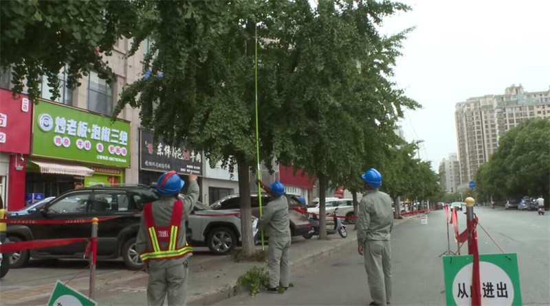 在北水壩路楚都公園段清障現(xiàn)場,工作人員按照既定計(jì)劃,以集中整治和日常維護(hù)相結(jié)合,利用工具有序地對(duì)電力線路附近的樹枝進(jìn)行清理,從根本上解決樹木對(duì)電力線路安全的威脅。