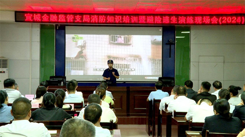 本網(wǎng)訊記者周波通訊員魏麗娜報道:為提高金融系統(tǒng)的消防安全意識,增強避險逃生能力。6月25日,宜城金融監(jiān)管支局消防知識培訓暨避險逃生演練現(xiàn)場會在宜城農(nóng)村商業(yè)銀行舉行。
