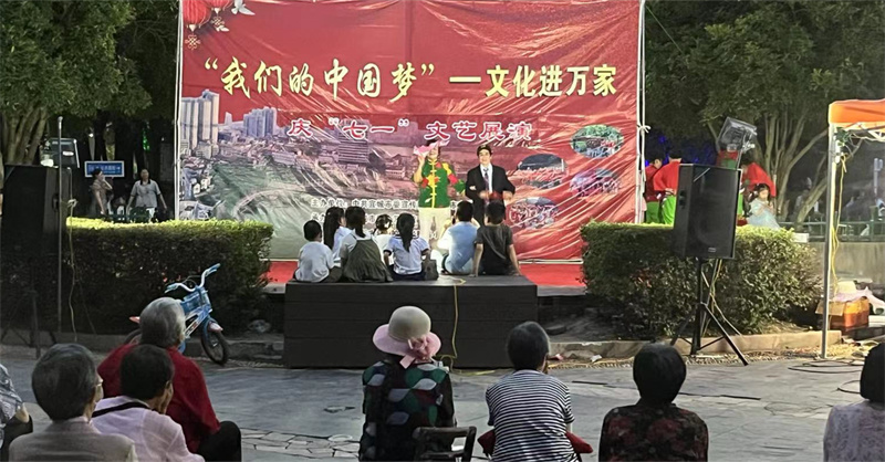 本網(wǎng)訊通訊員楊亦逍 李敏瑞報道:6月27日晚,由中共宜城市委宣傳部、市文化和旅游局主辦,市群眾藝術(shù)館承辦的“我們的中國夢”——文化進(jìn)萬家慶“七一”文藝展演活動在紫陽觀社區(qū)舉行,慶祝黨的103歲生日。
