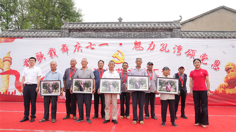 活動(dòng)于6月29日在孔灣鎮(zhèn)鐘崗村的文化廣場(chǎng)拉開(kāi)帷幕。市委組織部、市委老干部局、市老攝影家協(xié)會(huì)聯(lián)合為部分在黨50年的老黨員頒發(fā)了紀(jì)念照片,這一溫馨而又莊重的儀式深深觸動(dòng)了在場(chǎng)每一位老黨員的心。