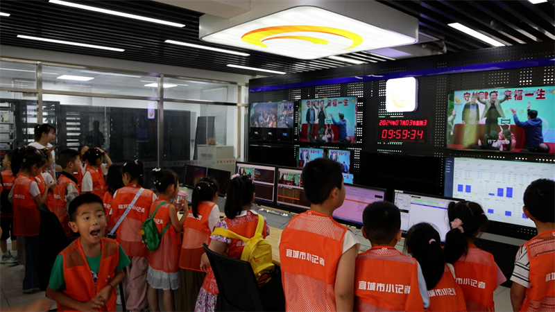 本網(wǎng)訊記者劉毅報(bào)道:7月3日,宜城市融媒體中心“小記者”體驗(yàn)研學(xué)活動(dòng)“開營(yíng)”,近百名“小記者”先后走進(jìn)市融媒體中心,參觀直播間、演播廳、制作室、播控中心、機(jī)房等地,探尋廣播電視臺(tái)的秘密,體驗(yàn)“電視人”的風(fēng)采。