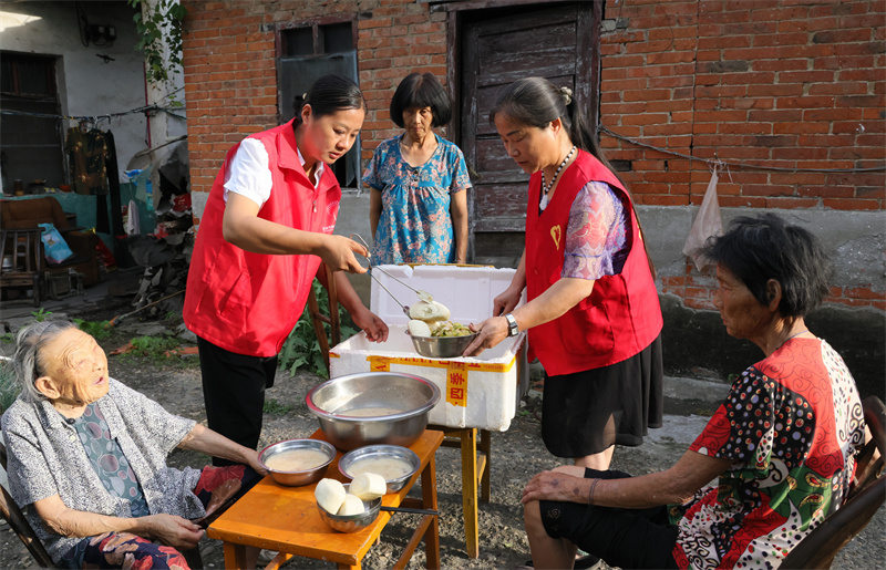 7點(diǎn)多,方丹和志愿者又騎著電動(dòng)車,上門為朱市老街部分無(wú)生活能力的獨(dú)居老人送餐。