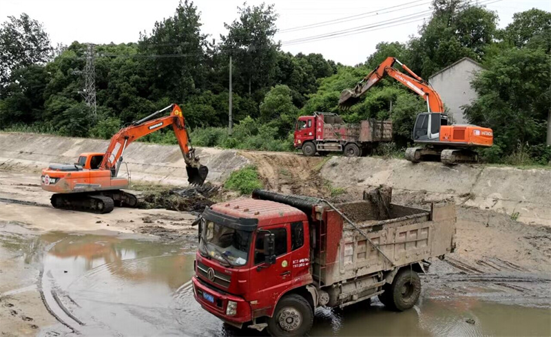 本網(wǎng)訊記者李勤通訊員葉忠云報(bào)道:7月5日,走進(jìn)彩城工業(yè)園段臘樹(shù)溝綜合整治施工現(xiàn)場(chǎng)看到,三四臺(tái)挖掘機(jī)伸長(zhǎng)“鐵臂”清理淤泥,運(yùn)輸車(chē)隨時(shí)“接應(yīng)”拉走……臘樹(shù)溝清淤已近尾聲,基本疏浚暢通。