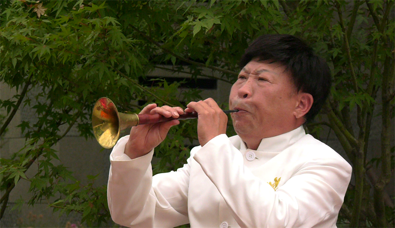 “特別是這個口哨,最不容易吹的,需要卡在小舌頭里面,一不小心就會吞進(jìn)肚子里,很多人不愿意學(xué),很危險,師傅也反復(fù)地交待我們,在練習(xí)的過程中,這個鐵經(jīng)常給喉嚨磨出血泡,我懷著對漢江磨調(diào)的熱愛,堅持下來了。漢江磨調(diào)第五代傳承人胡新波說”。