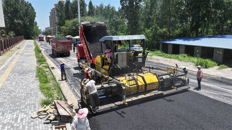 紫陽觀北路位于龍頭公寓西側(cè),主路寬度14米,沿線學校、小區(qū)、商鋪集中,人多、車流量大,建成通車后將貫通育才大道、北環(huán)二路,極大改善沿線的宋玉小學、實驗幼兒園以及小區(qū)、公寓等出行條件。因為高溫天氣攤鋪瀝青質(zhì)量有保證,而且要搶在瀝青沒有降溫前完成,因此施工人員無懼“烤”驗,搶抓當前高溫天氣緊張施工。