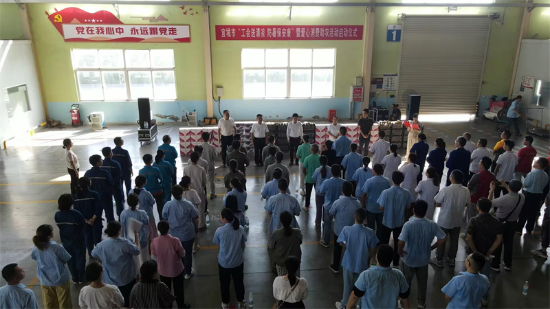 本網(wǎng)訊記者劉毅通訊員周佩 雨魯麗報(bào)道:7月30日,宜城市“工會(huì)送清涼 防暑保安康”暨愛心消費(fèi)助農(nóng)活動(dòng)啟動(dòng)儀式,在湖北友謙汽車零部件有限公司舉行。市領(lǐng)導(dǎo)王海、廖華榮、丁國(guó)鋒參加活動(dòng)。