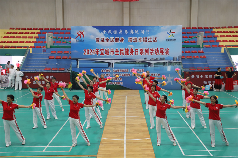 本網(wǎng)訊記者鄭潘報(bào)道:夏日炎炎,全民健身熱情不減。為慶祝全國(guó)第16個(gè)“全民健身日”,8月8日,宜城市“全民健身日”系列活動(dòng)展演在市體育館展開(kāi)。