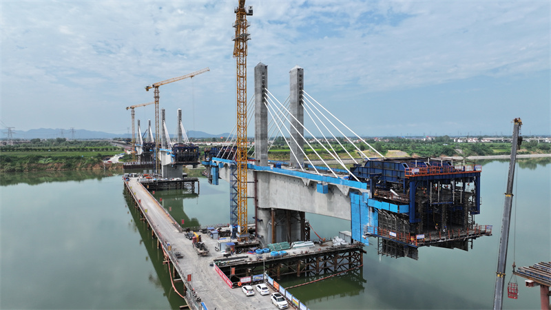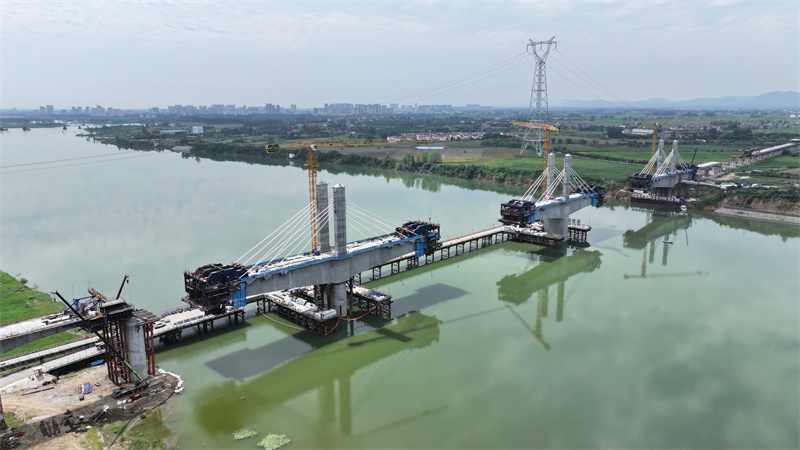 宜城漢江特大橋全長約25.5千米,跨漢江航道主橋長576米,是襄荊鐵路重點(diǎn)控制性工程,也是全線施工難度最大的橋梁。記者在項目施工現(xiàn)場看到,工人們正堅守一線,戰(zhàn)高溫、保進(jìn)度,穩(wěn)步推進(jìn)工程建設(shè)。