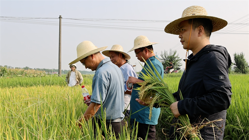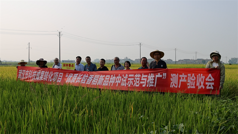 在宜城市金鋪村一處種植基地,專家們走進田間地頭,隨機抽取不同位置的水稻進行測產(chǎn)。經(jīng)現(xiàn)場專家一致認定,香稻新品種潤豐香占單產(chǎn)達到659.28公斤,相較往年增產(chǎn)7.8%。
