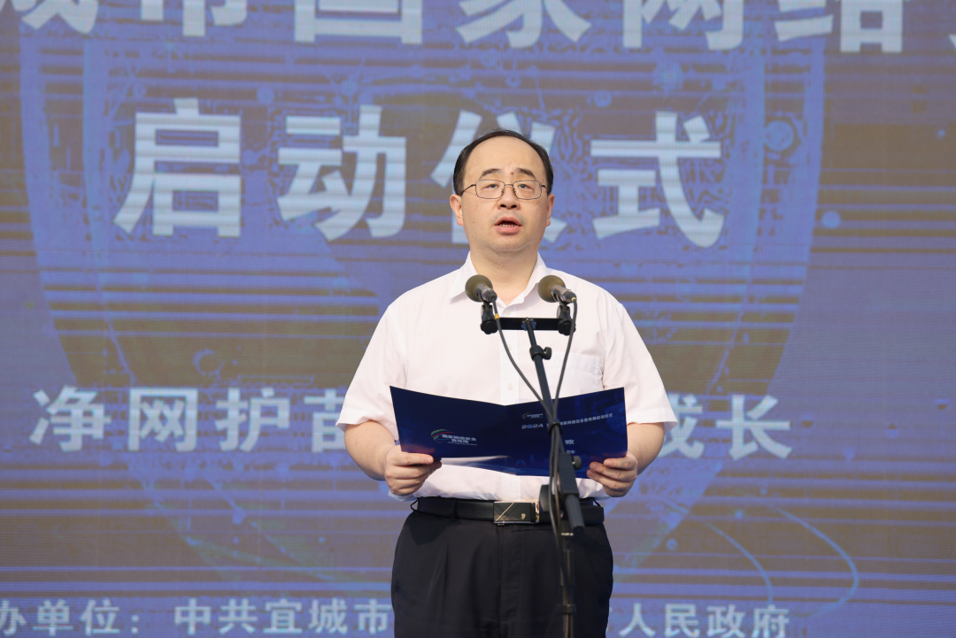 在3、2、1倒計時中,省委網(wǎng)信辦網(wǎng)絡管理處四級調研員謝太平、襄陽市委網(wǎng)信辦主任楊朝暉和宜城市領導武義泉、朱曉林、蒙瑾、曾勁松、張雪峰共同按下啟動球,宣布活動正式啟動。宜城市委書記武義泉希望廣大群眾,要依法上網(wǎng)、安全上網(wǎng)、文明上網(wǎng)、理性上網(wǎng),爭做網(wǎng)絡法治的“守護者”、網(wǎng)絡安全的“維護者”、網(wǎng)絡文明的“傳播者”、網(wǎng)絡環(huán)境的“建設者”。