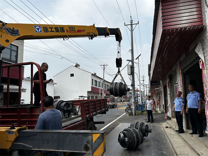 吊車吊起砝碼檢定地磅