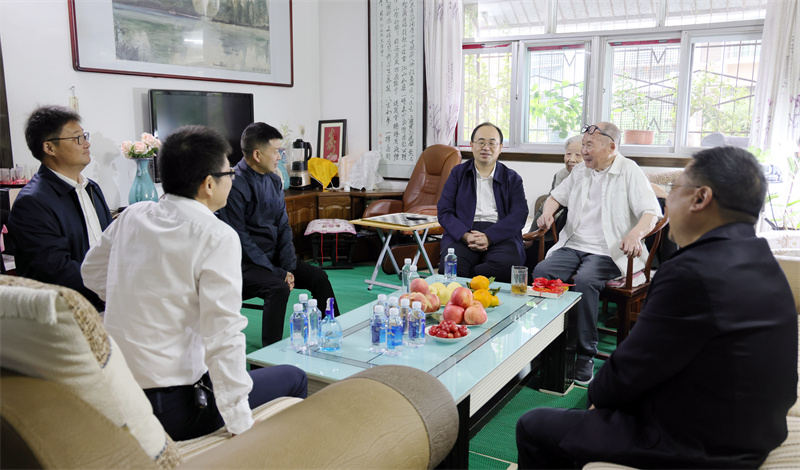 在王孔庚家中,武義泉關切詢問老人的生活起居和身體情況,對他這種無私奉獻、矢志不渝、求真務實的工作作風表示欽佩和贊賞。