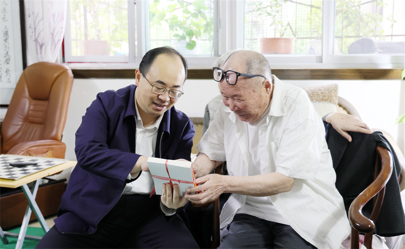 市委書記武義泉給離休老干部王孔庚送書