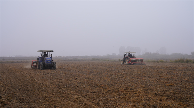 宜城市茂梅種植專業(yè)合作社負責人王擁軍介紹道:“我們合作社有兩臺播種機,一天能播100畝左右,小麥共有1300畝,估計13天左右能全部播完。”