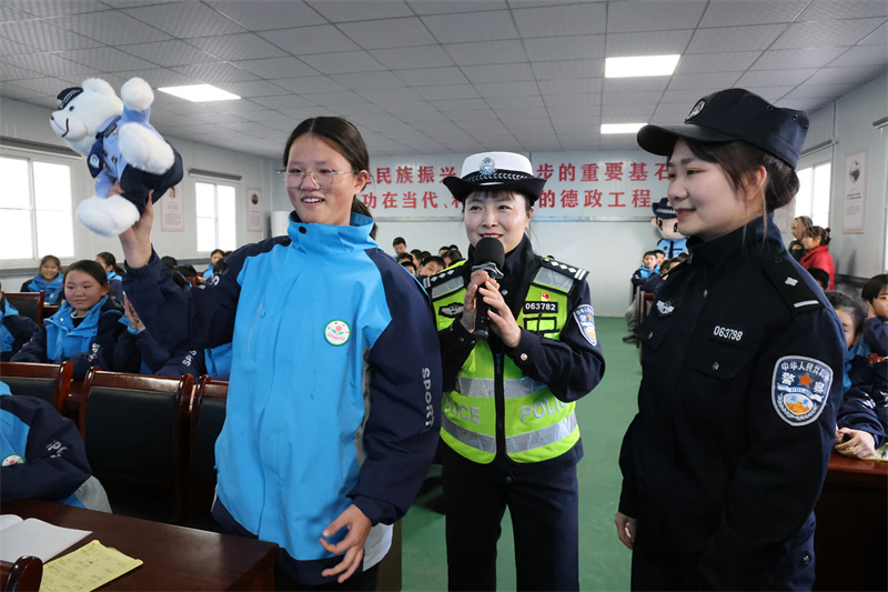 活動首先在該校多媒體教室展開,民警結(jié)合今年122“全國交通安全日”活動主題“文明交通 攜手共創(chuàng)”,精心準備了PPT課件,播放交通安全教育宣傳片,并結(jié)合學(xué)生的年齡特點、農(nóng)村道路交通實際和季節(jié)出行特點,深入淺出地向?qū)W生講解冬季交通安全的必備常識。期間,民警以有獎問答的形式和學(xué)生們開展互動,孩子們積極參與,踴躍發(fā)言,回答正確的學(xué)生都得到了“警察小熊”玩偶。