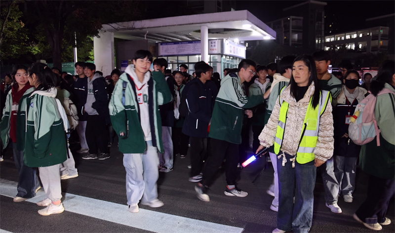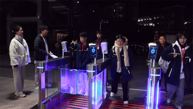 在每次晚自習(xí)下課之前,學(xué)校的值守老師已經(jīng)提前站在校門口,等候下晚自習(xí)的學(xué)生們有序走出教室,然后通過刷臉,驗走讀證走出校門。