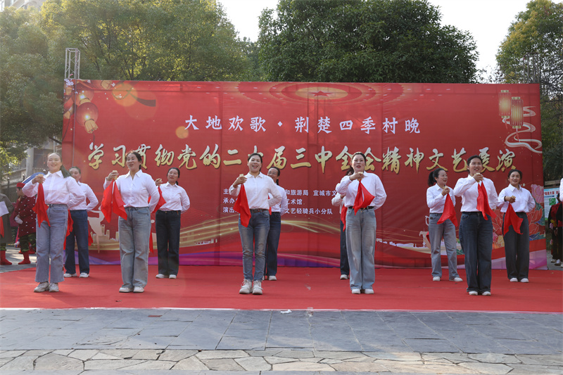 舞蹈《祖國你好》、音樂快板《黨的二十屆三中全會精神放光芒》、花棍舞《沒有共產(chǎn)黨就沒有新中國》、模特秀《楚樂行》、群口鑼鼔墜子板《黨的二十屆三中全會精神指航向》等節(jié)目,用生動活潑的表演形式向觀眾們宣講黨的二十屆三中全會精神,贏得了陣陣掌聲。