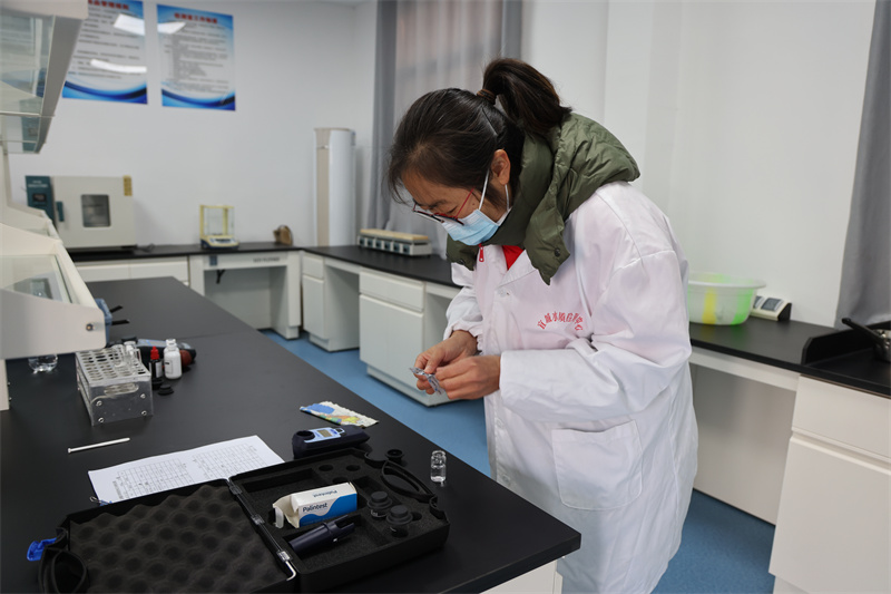 章咀水廠工作人員對(duì)水質(zhì)進(jìn)行檢測(cè)